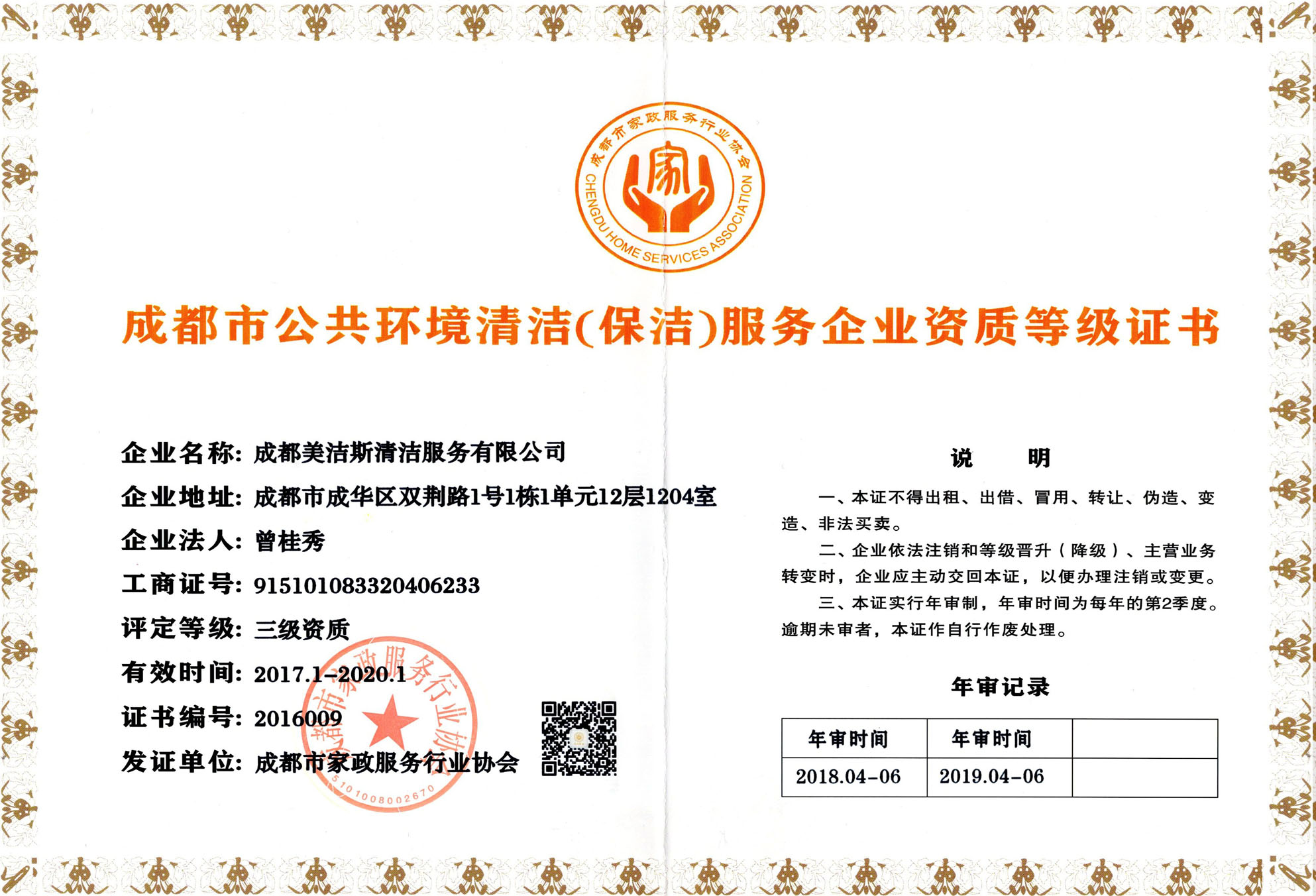 2016年11月,公司經過為期一年的努力,管理面積擴大,人員數量、綜合素質不斷提高,各項制度規程逐漸健全,在主管部門的支持與幫助下,暫三級資質證書成功升級為三級資書。
