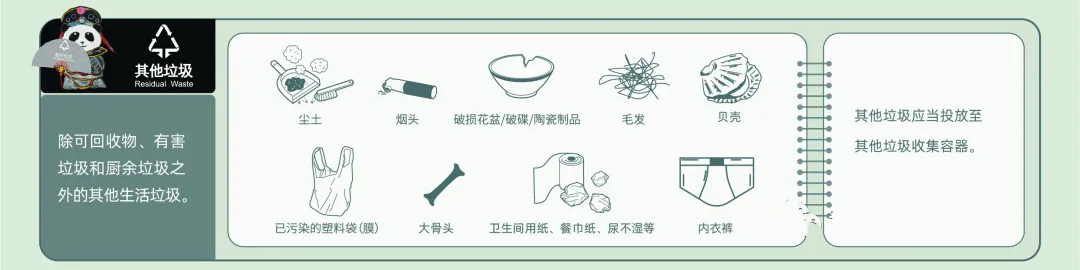 其他垃圾,指除有害垃圾、可回收物、廚余垃圾以外的其他生活廢棄物。大多數(shù)家用衛(wèi)生品、化妝品及化妝用具,以及復合型的。由多種材質(zhì)、部件組成卻難以拆解的產(chǎn)品,比如打火機、筆、傘等。