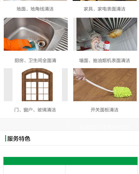 以上均為個人家庭用戶價格,企業(yè)用戶請通過“清潔外包”承接業(yè)務預約。